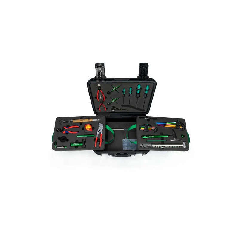 Nous commençons avec un étui Pelican avec des graphismes subtils sur la coque avec la touche personnalisée d'une étiquette gravée en vert Abbey caractéristique. Ensuite, il y a 3 couches de mousse XLPL découpée sur mesure pour garder les outils inclus organisés, en sécurité et sécurisés. Nous avons même inclus une petite boîte pour tous vos petits articles. La couche inférieure vous donne quelques options, vous pouvez utiliser les découpes larges pour ranger un kit de purge, de lubrifiant, de retenues de filetage, ou vous pouvez utiliser la mousse incluse pour personnaliser encore plus le kit pour construire votre boîte à outils parfaite.