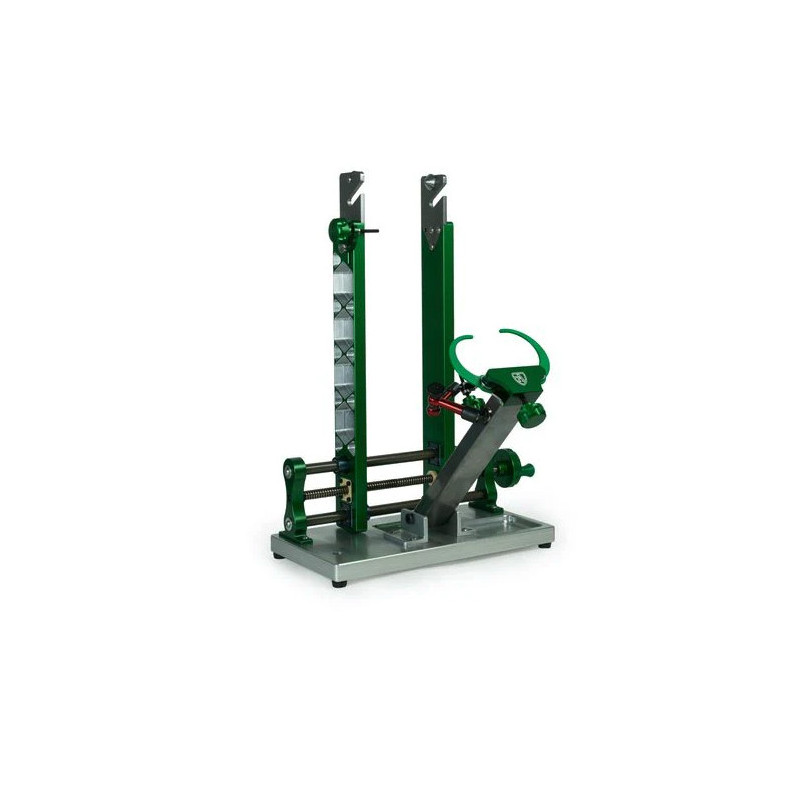 Nos propusimos fabricar un soporte de centrado de rueda como ningún otro, algo que tuviera una base estable como fundamento de precisión y repetibilidad. Queríamos que el soporte reflejara de manera confiable una línea central para que siempre estuviera en la llanta, sin importar el ancho del buje o de la llanta. Necesitábamos una buena solución para el eje pasante que no requiriera adaptadores. En la era de los frenos de disco, queríamos poder enderezar los rotores mientras la rueda estaba en el soporte. Queríamos un soporte que fuera tan cómodo para alinear ruedas para una revisión general como para construir ruedas dignas de la competencia de élite. Agregamos la posibilidad de usar indicadores de cuadrante para el desplazamiento radial y lateral, y puedes usar uno para el rotor si lo deseas. El diseño consiste en hacer compromisos y pasamos casi 6 años reflexionando y ajustando este, los resultados no decepcionan.