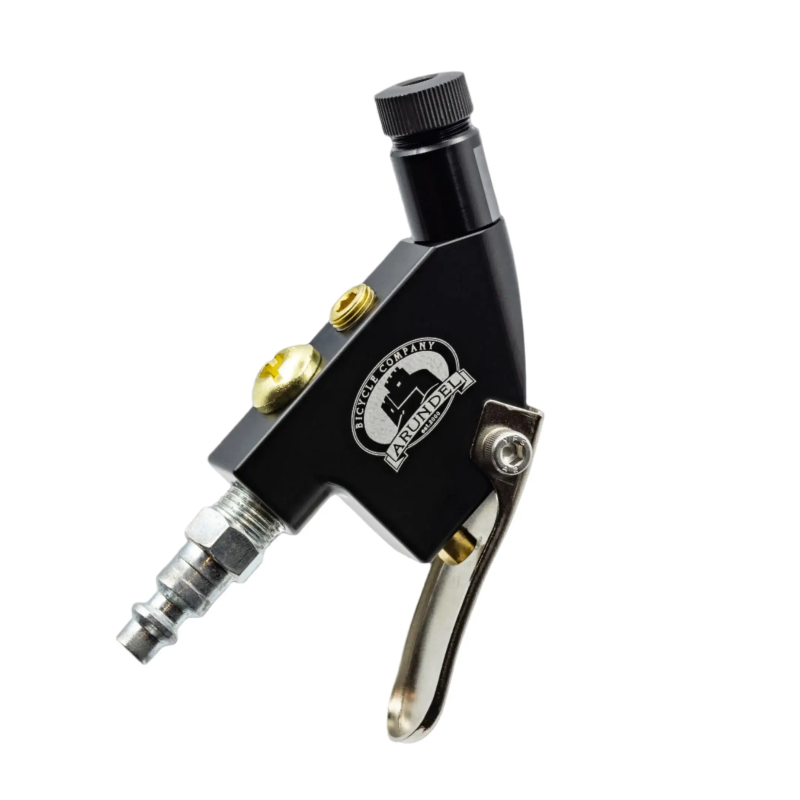 El CNC Nugget es una nueva versión compacta de nuestro inflador Presta Shop, compatible con compresores de aire. Su cuerpo de aluminio mecanizado CNC dispone de conductos de aire internos perforados. Así, cuando se equipa con un manómetro (no incluido), mide la presión de los neumáticos y no la del compresor, una característica compartida con nuestros infladores originales.