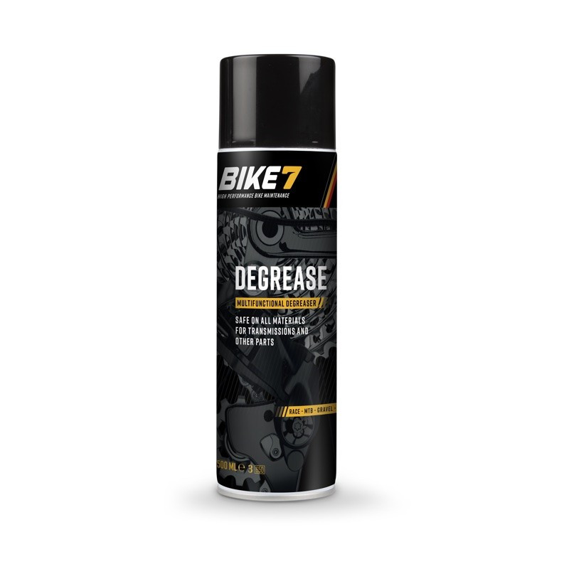 A menudo nos enfrentamos a suciedades de tipo químico en nuestras bicicletas. Un aceite usado, grasa, restos de pegamento de cinta de manillar o de pegatina, alquitrán, etc. Bike7 Degrease es ideal para eliminar todas estas suciedades.
