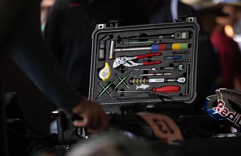 Avance rapide de deux ans et Jeff Crombie obtient son premier emploi à temps plein avec l'équipe pro-continentale canadienne Spyder Tech. En prévision de la saison à venir, il a demandé à son ami de lui fabriquer un outil personnalisé. L'expérience de Jeff en tant qu'A&P signifiait que les erreurs n'étaient pas une option. Les erreurs dans l'aviation signifient un accident d'avion et cela implique normalement la mort de personnes. Jeff voulait vérifier les anneaux de verrouillage quotidiennement dans le cadre du "vérification du boulon" standard que chaque mécanicien de course passe. Un appel téléphonique plus tard, l'idée de notre outil signature est née. 48 heures plus tard, Jason perçait des trous dans les anneaux de verrouillage et les poignées de soudage dessus.
