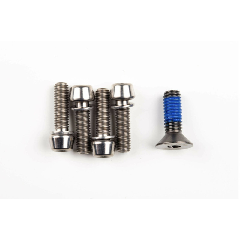 Kit de tornillos de repuesto para la potencia ENVE SES Aero Road. Incluye todos los pernos necesarios para la abrazadera del tubo de dirección y la abrazadera de la placa frontal. El material del perno es titanio.