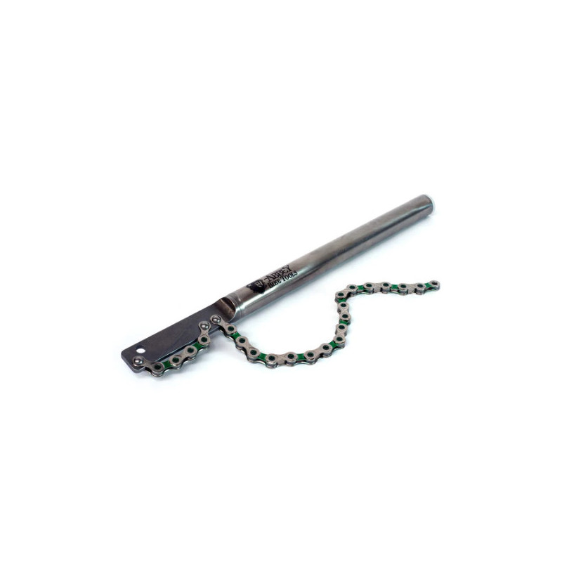 Een kettingzweep is een vrij eenvoudige tool, maar de Whip-It maximaliseert functionaliteit en eenvoud. De Whip-It is gemaakt van een 12 inch roestvrijstalen staaf om u genoeg hefboomwerking te geven om zelfs de meest hardnekkige cassettes los te maken. De ronde handgreep van de Whip-It biedt superieur comfort ten opzichte van andere platte staaf kettingzwepen op de markt. De kers op de taart is dat Abbey's kenmerkende tool, de Crombie (afzonderlijk verkocht), in de handgreep van de Whip-It wordt opgeborgen! Dit betekent dat de twee tools die u samen gebruikt, samen worden opgeborgen en samen reizen, waardoor u minder rommel in uw gereedschapskist heeft.